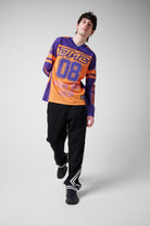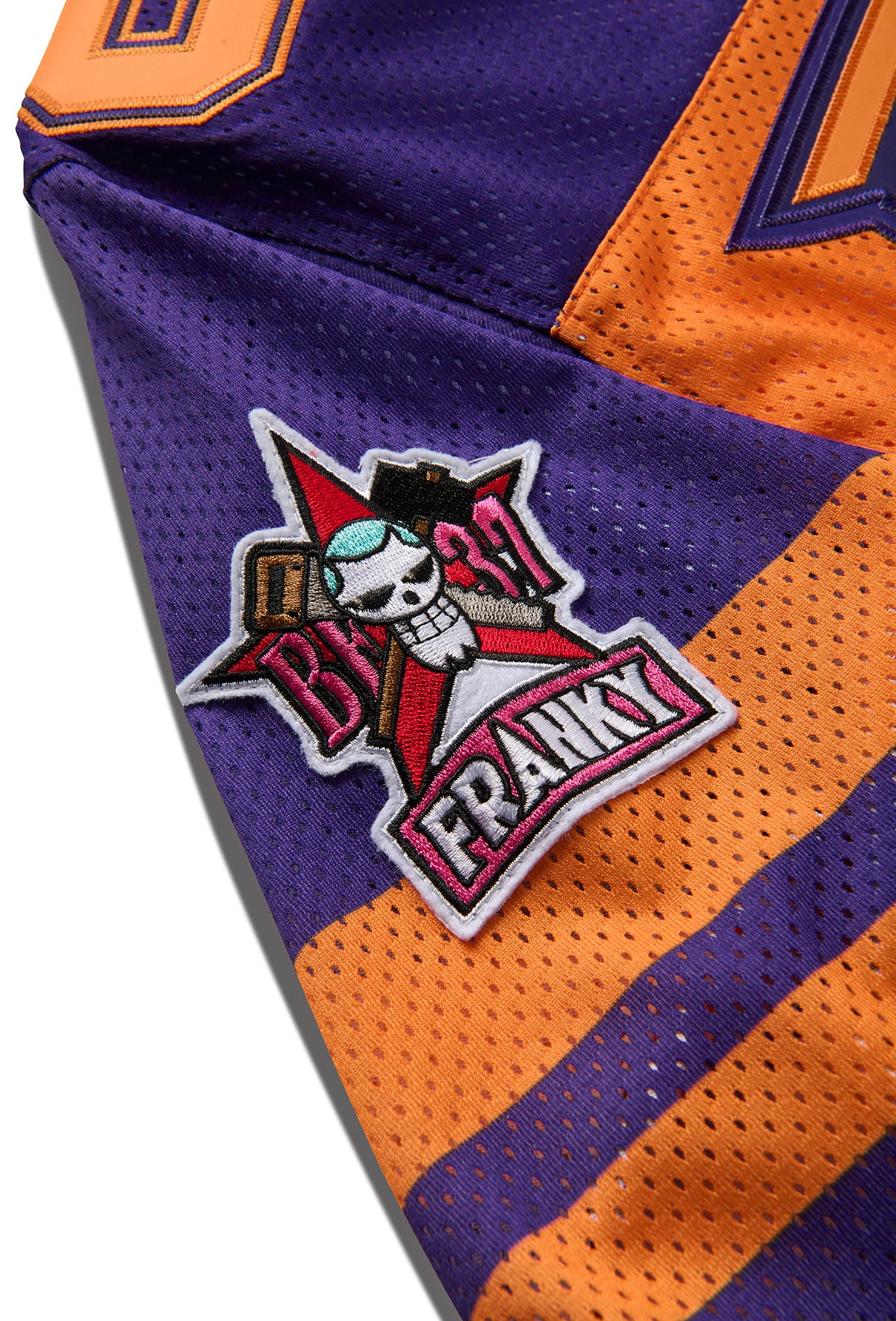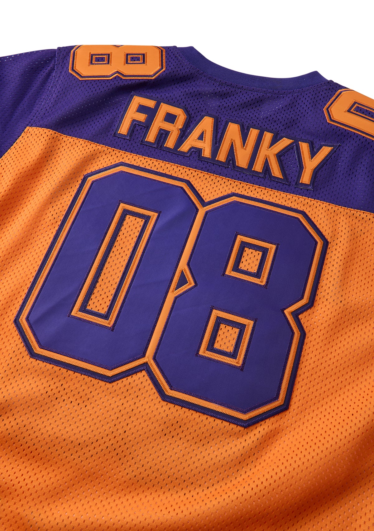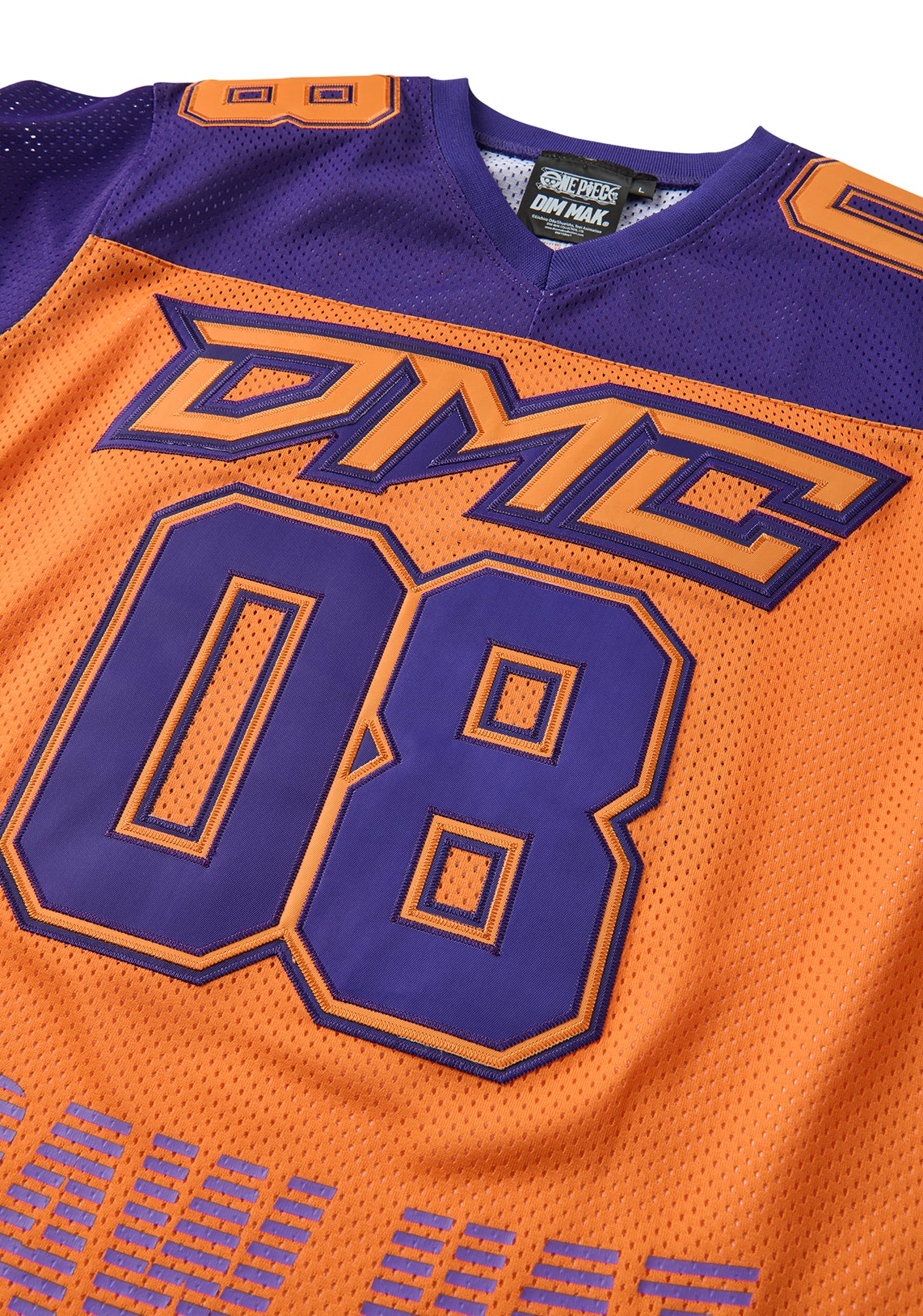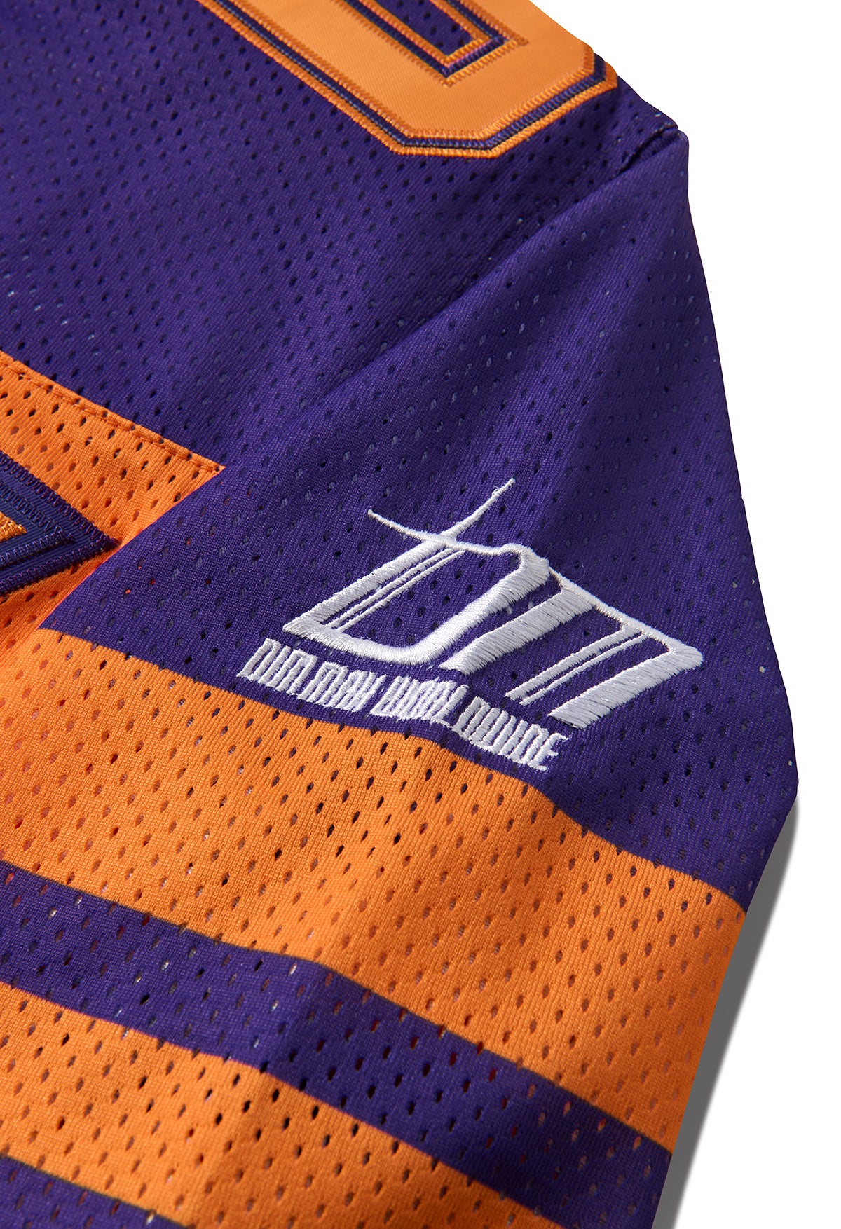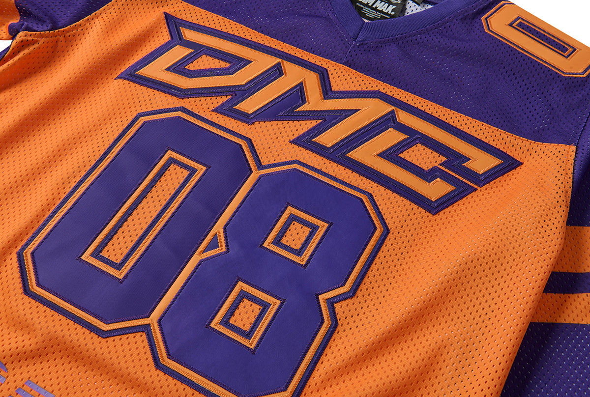 100% Polyester / Long sleeve mesh jersey / Front, back and shoulder tackle twill applique / Embroidered logo upper left arm / Sublimated sleeve and body / Screen printed center chest / Custom sleeve patches / Logo printed lower back.