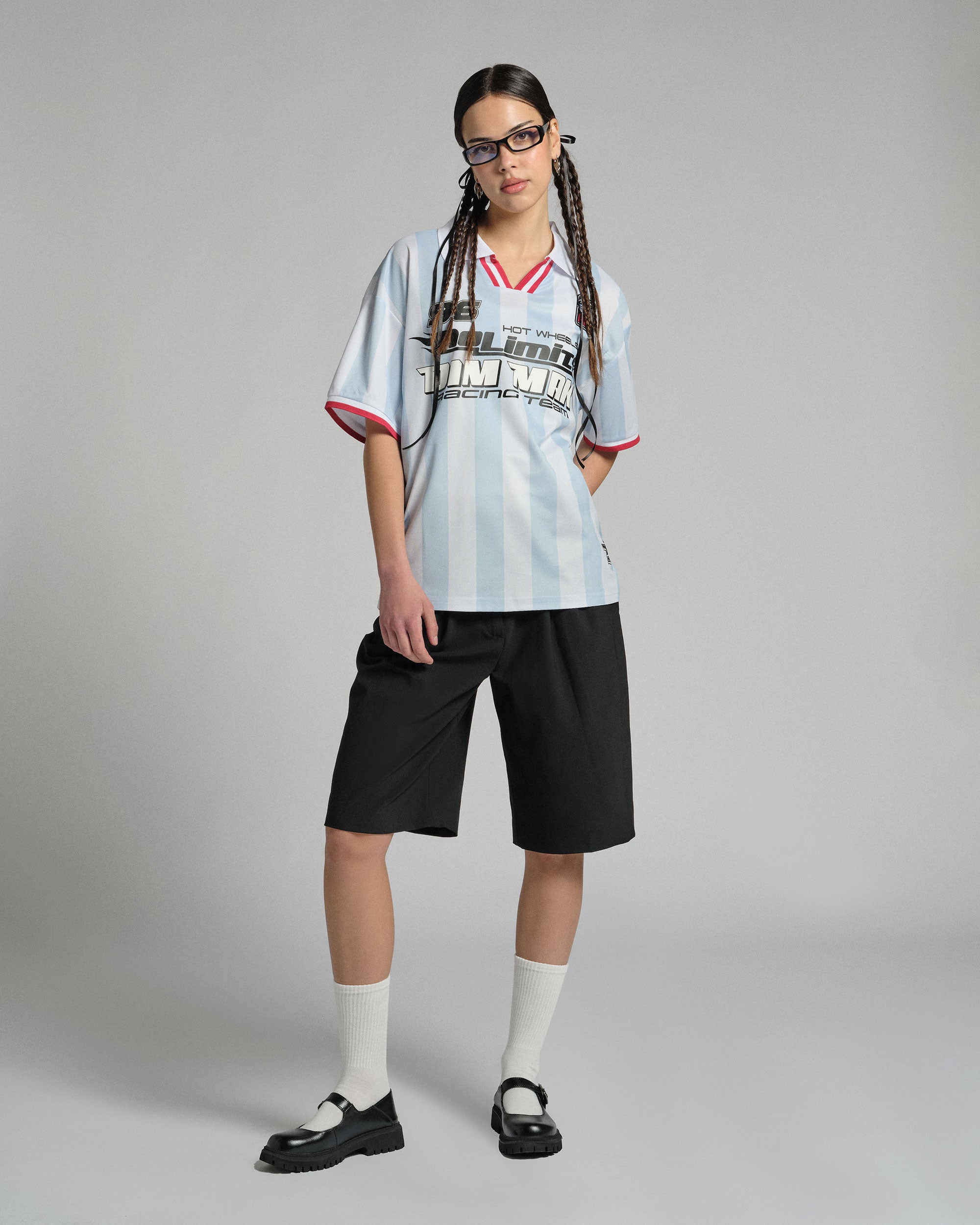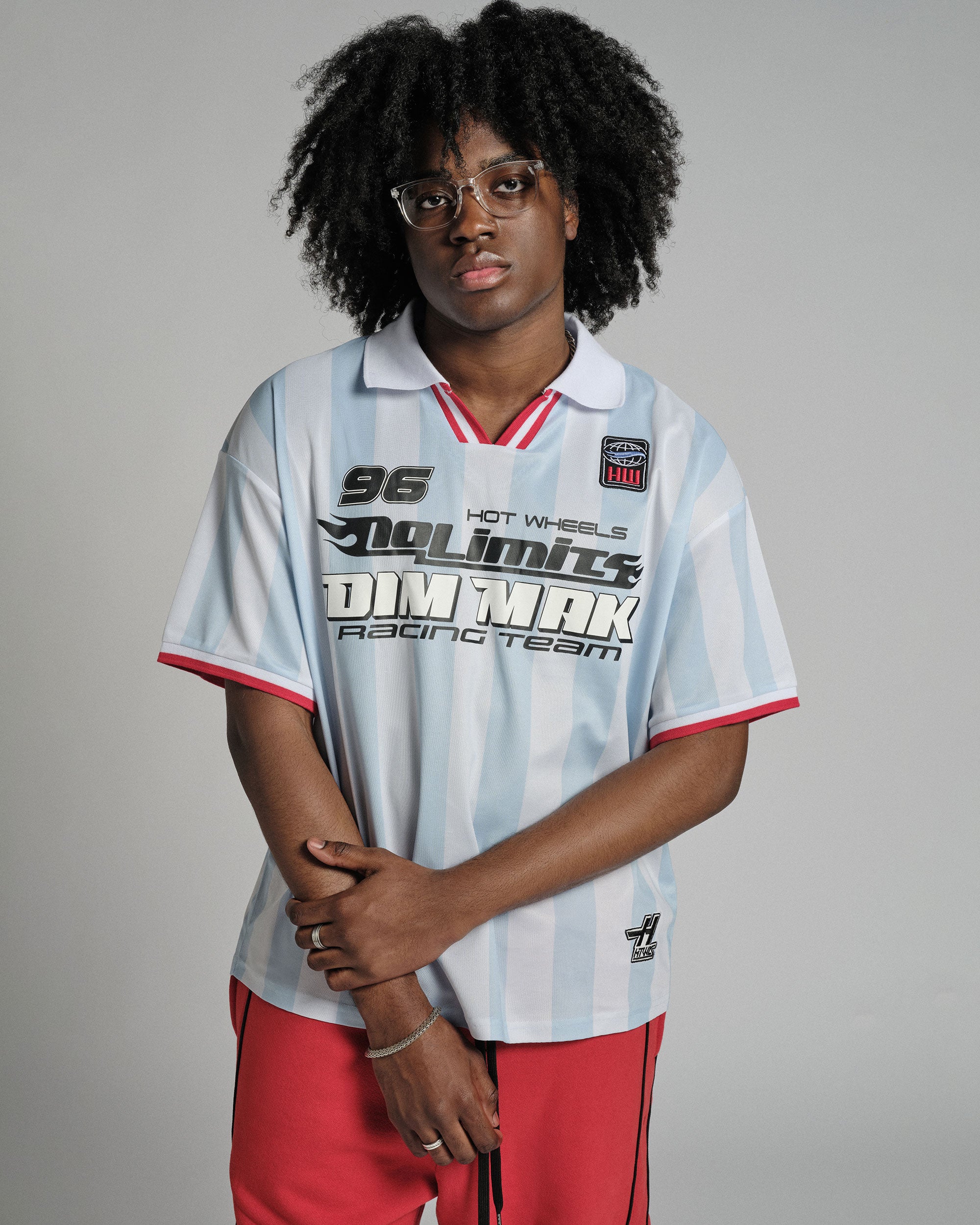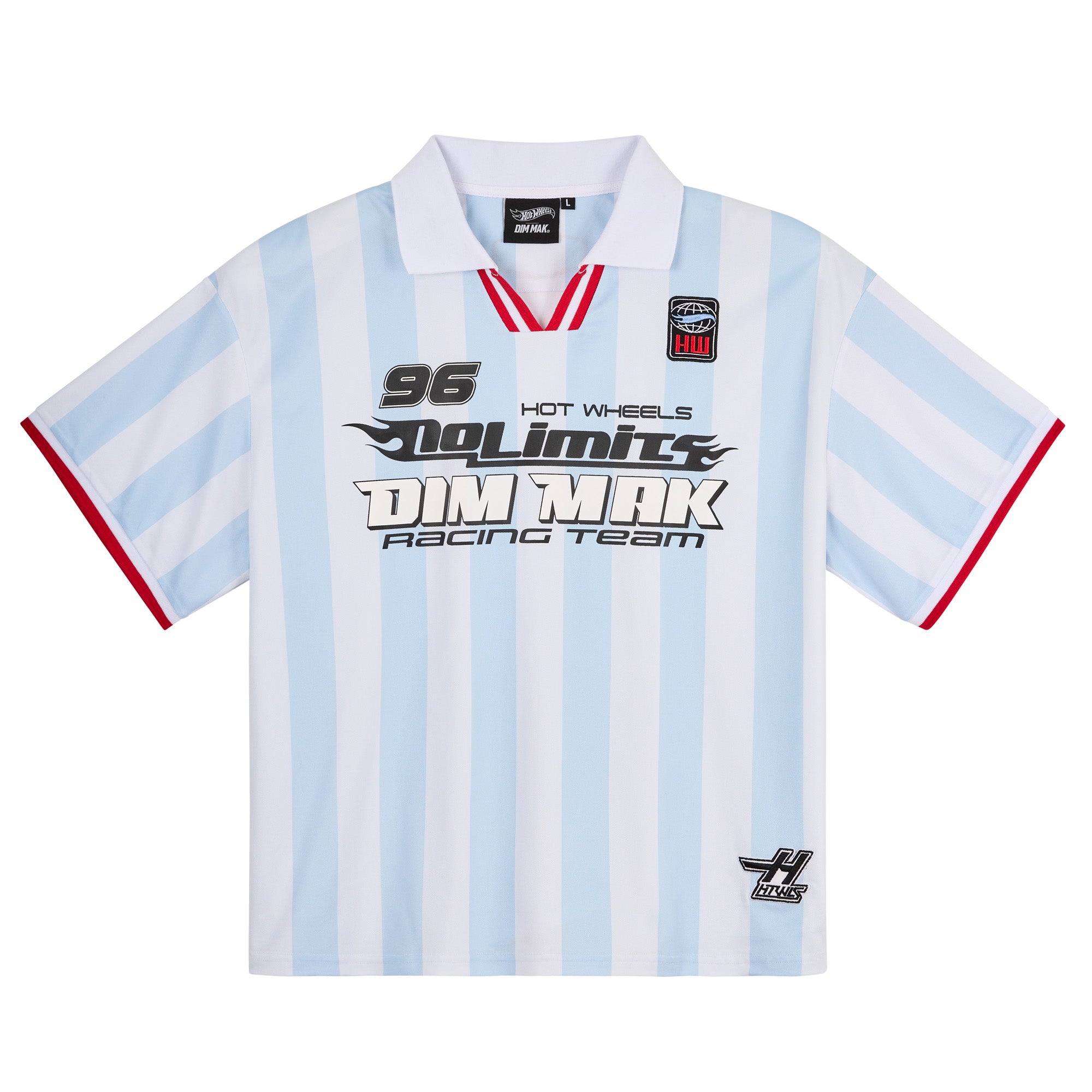 Full-throttle fashion. The No Limits Racing Jersey from Hot Wheels™ x DIM MAK COLLECTION® brings together two icons for one unforgettable piece. Featuring bold graphics and finishes that celebrate racing heritage and streetwear attitude.