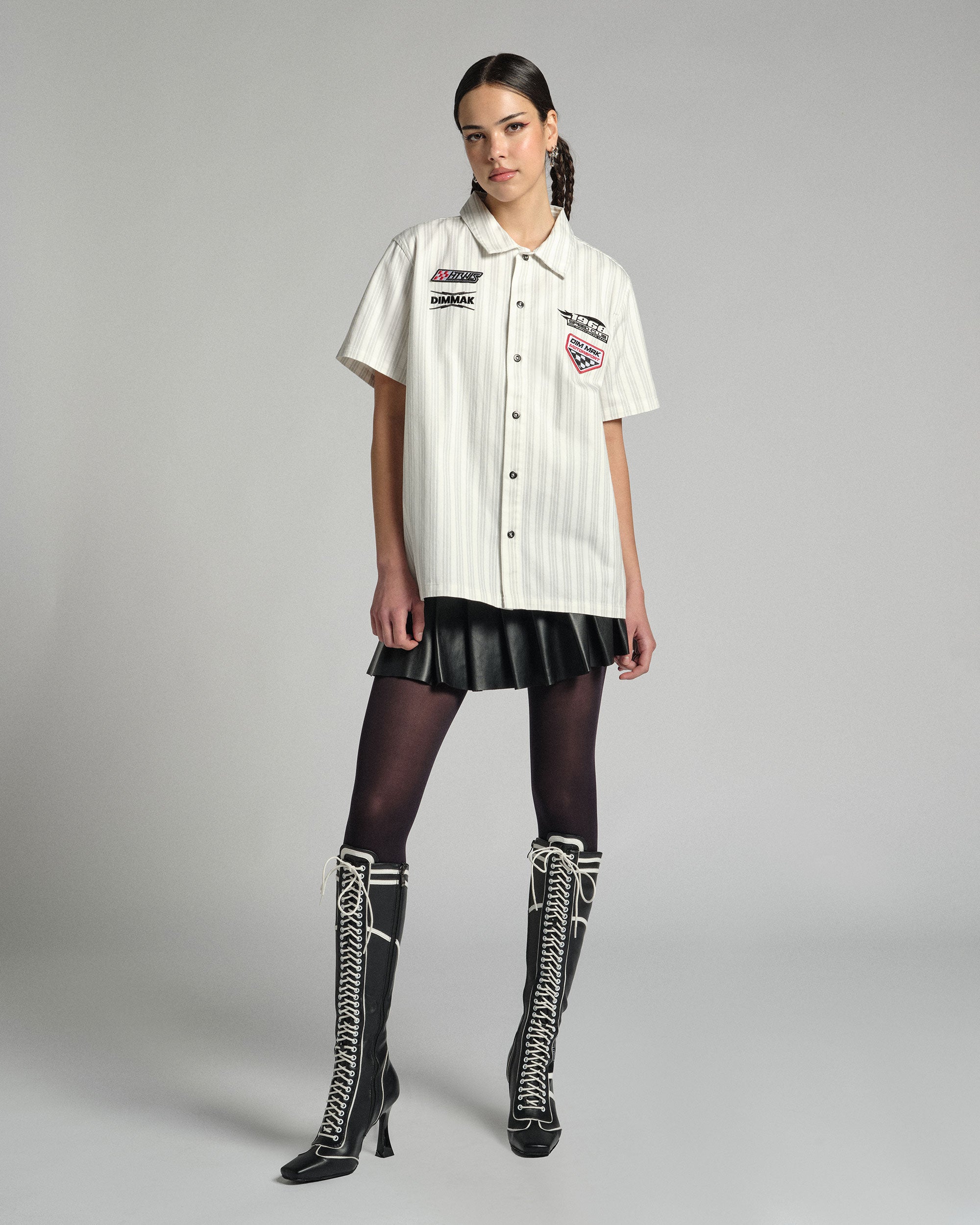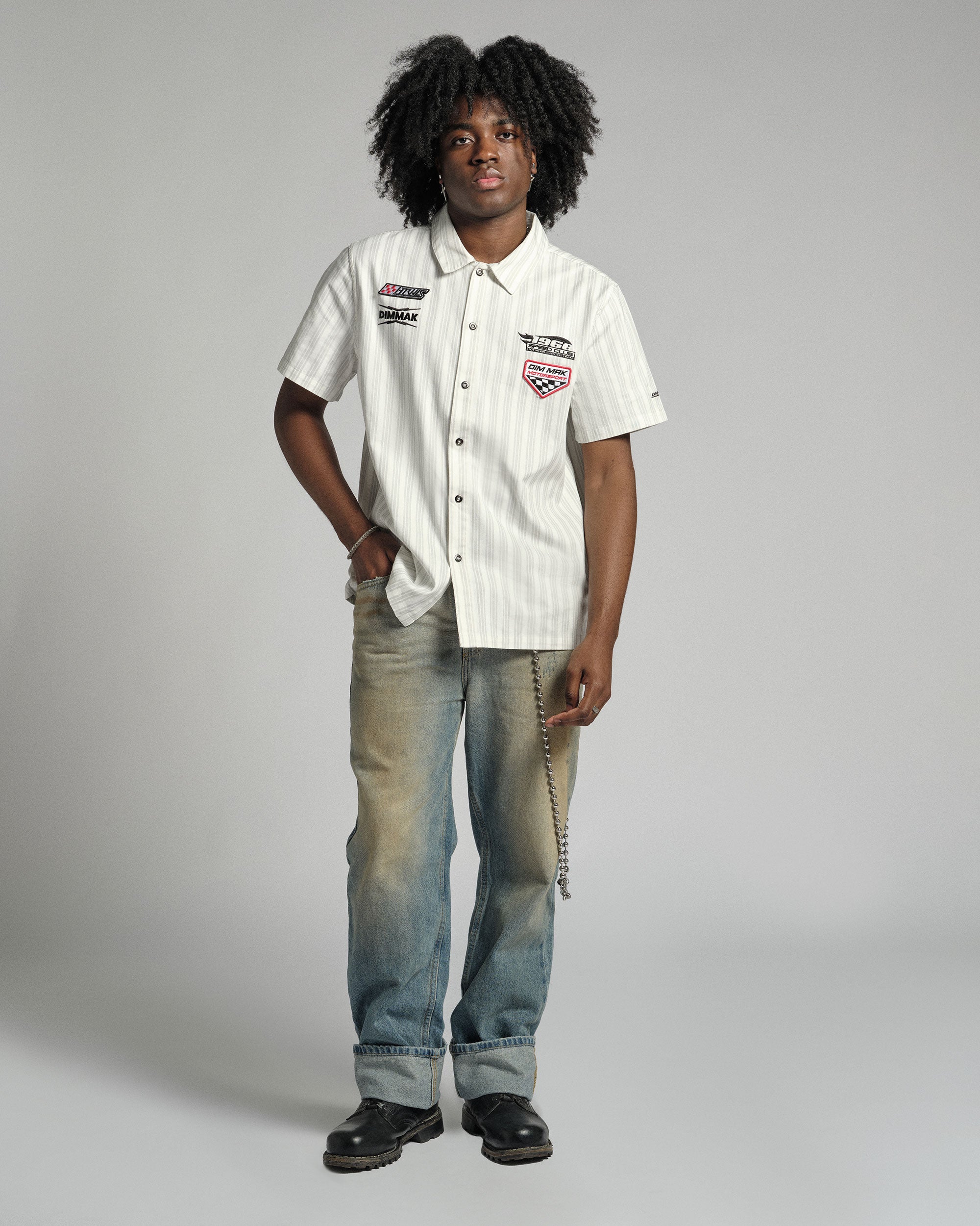 Full-throttle fashion. The Pit Crew Woven Shirt from Hot Wheels™ x DIM MAK COLLECTION® brings together two icons for one unforgettable piece. Featuring bold graphics and finishes that celebrate racing heritage and streetwear attitude.