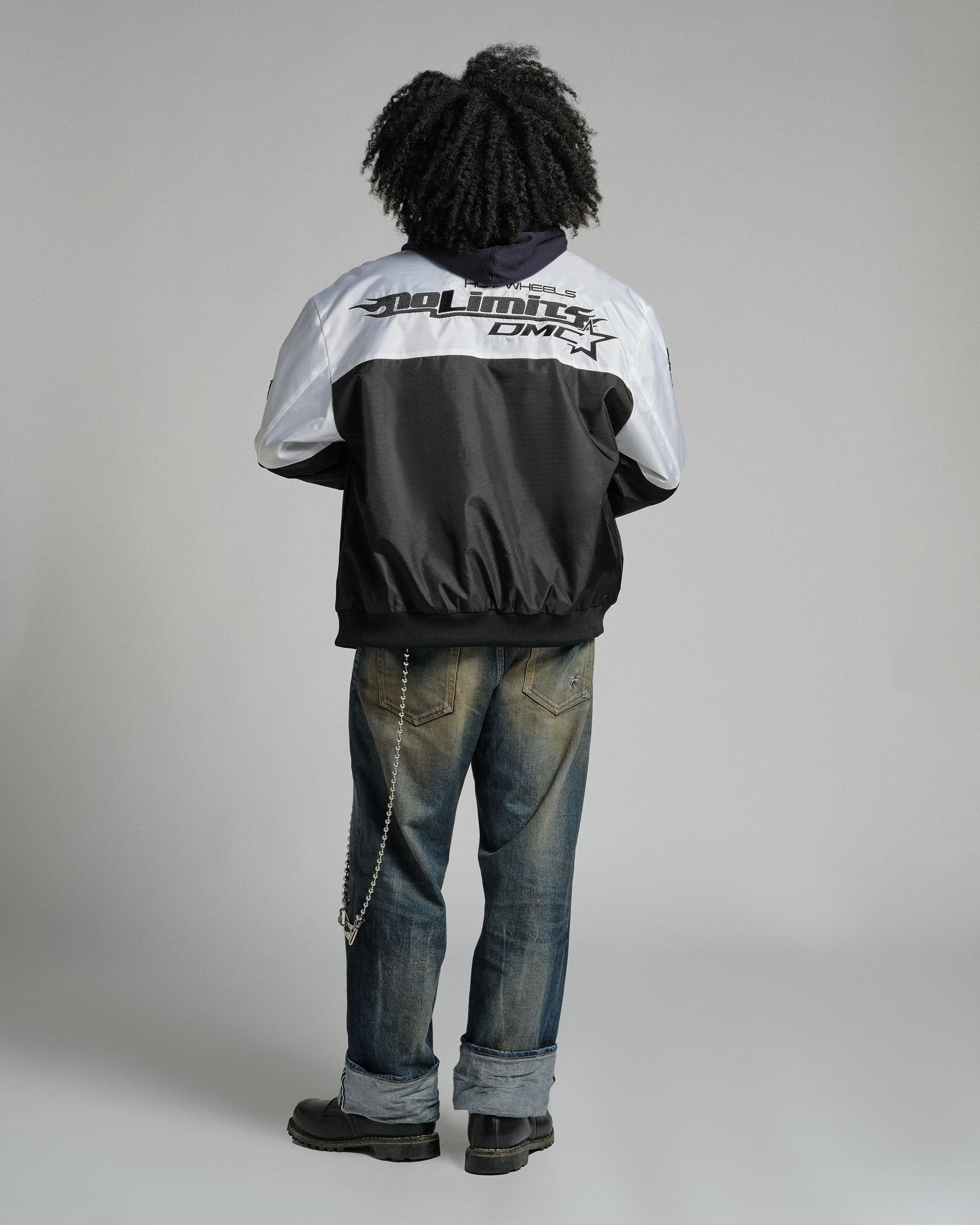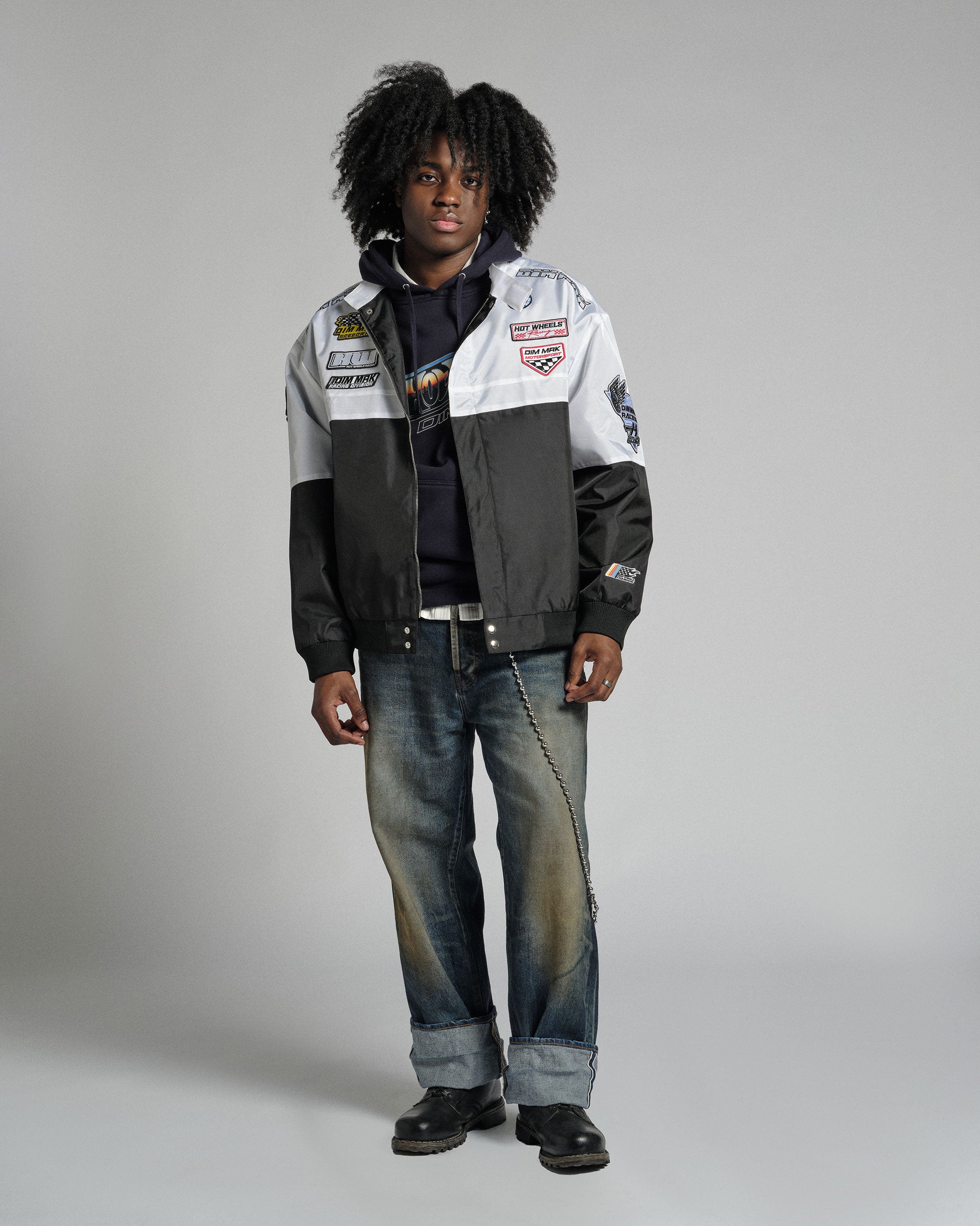 Full-throttle fashion. The racing jacket from Hot Wheels™ x DIM MAK COLLECTION® brings together two icons for one unforgettable piece. Featuring bold graphics that celebrate racing heritage and streetwear attitude.