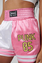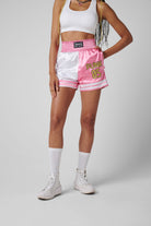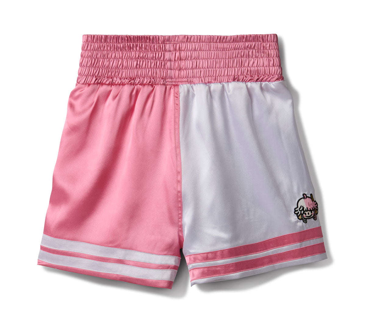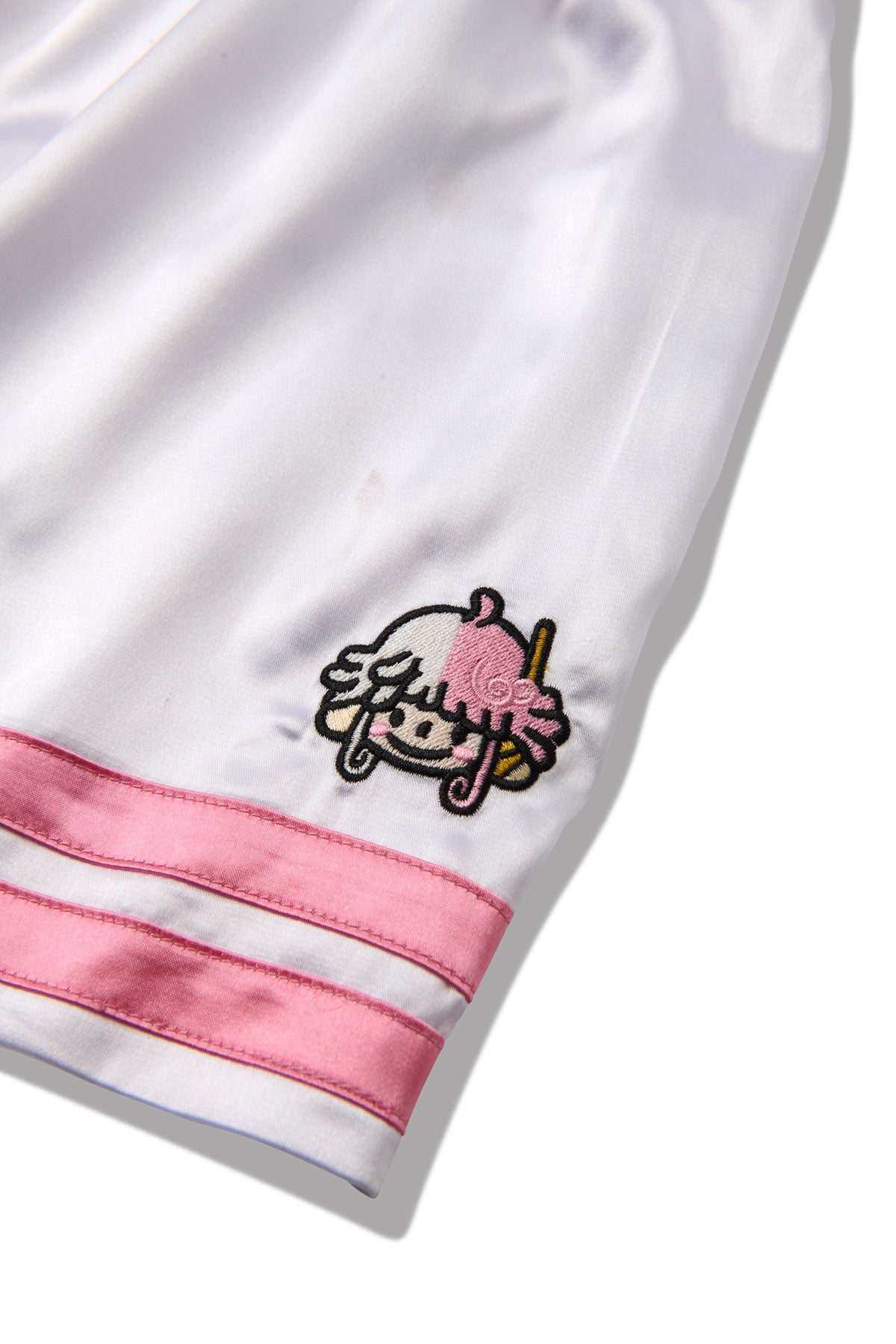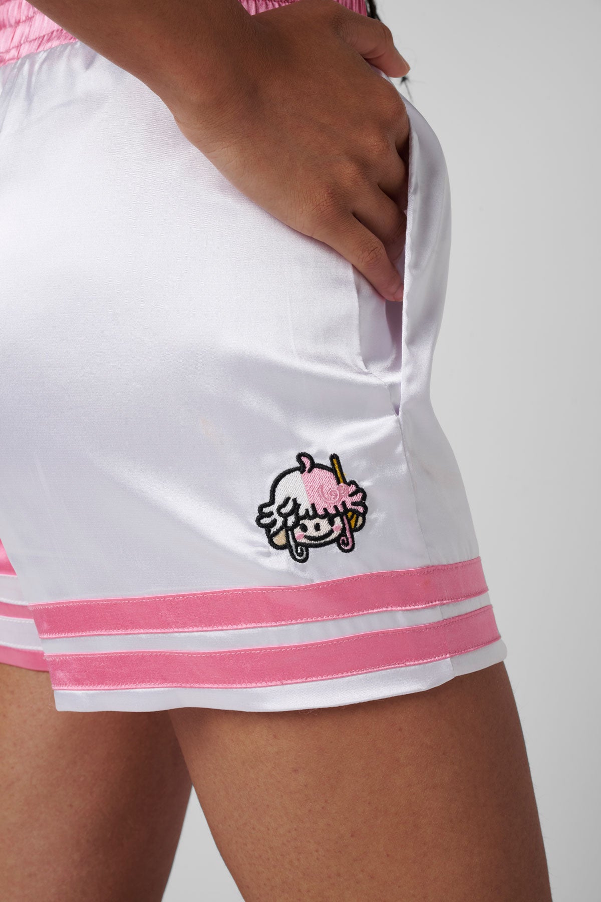 Made with satin polyester, these shorts feature a comfortable elastic waist and a screen print front. The contrasting boxer shorts have a character embroidered on the back, ensuring a unique and stylish addition to your wardrobe.