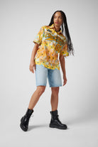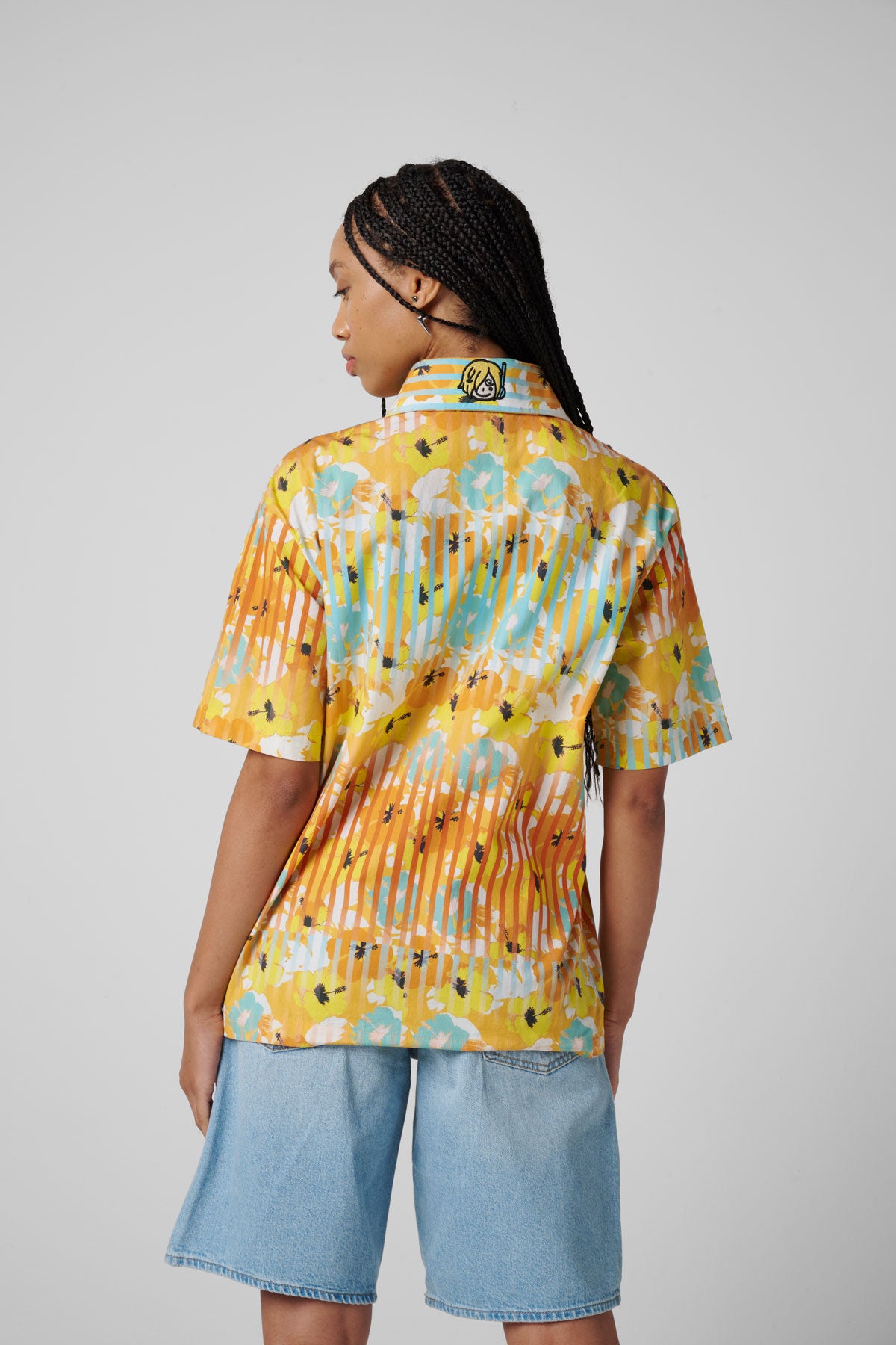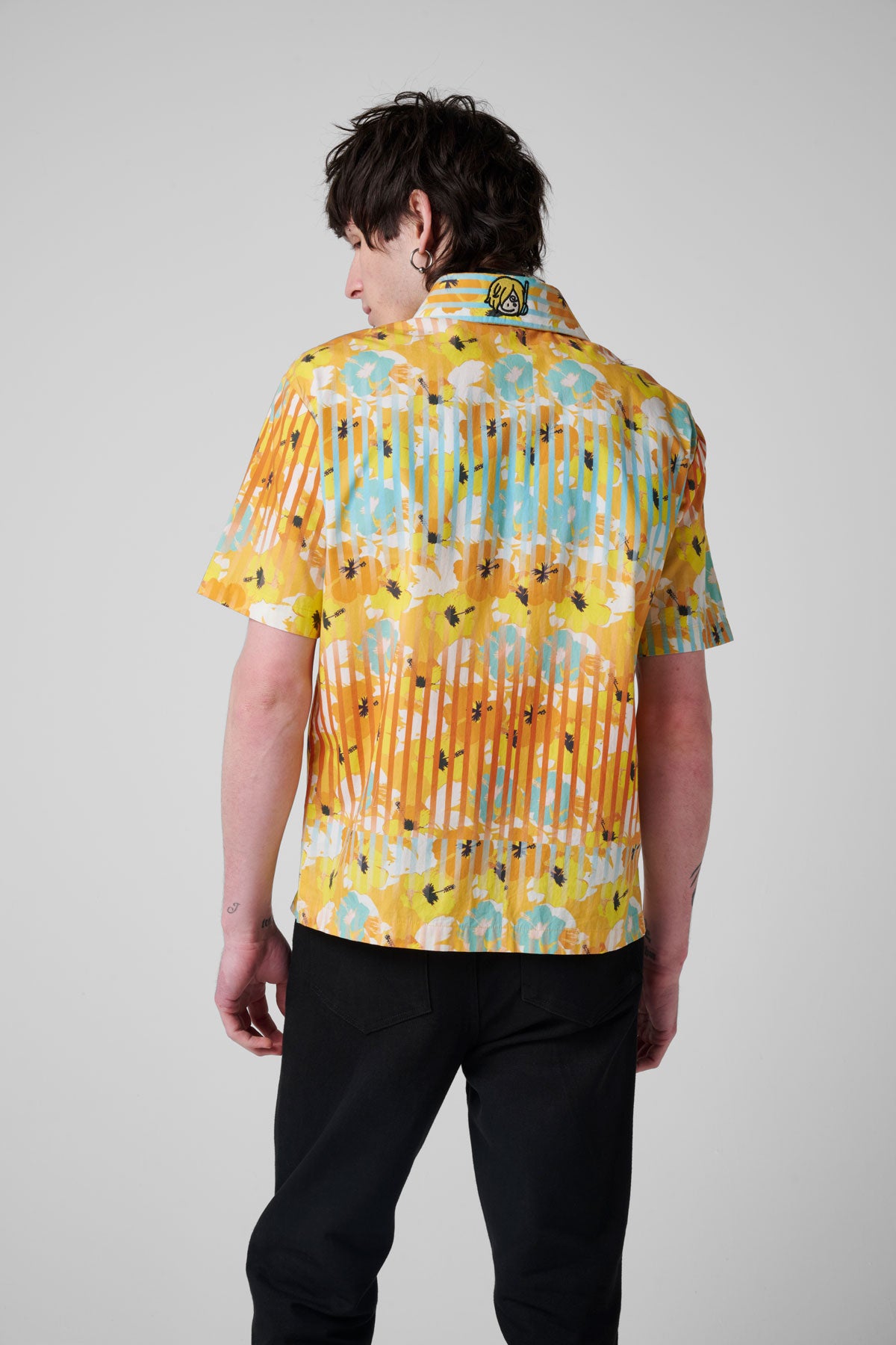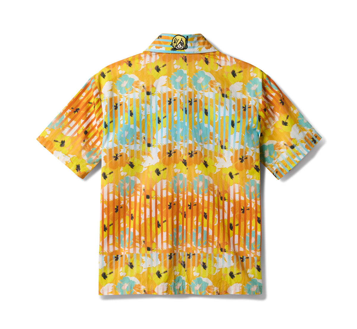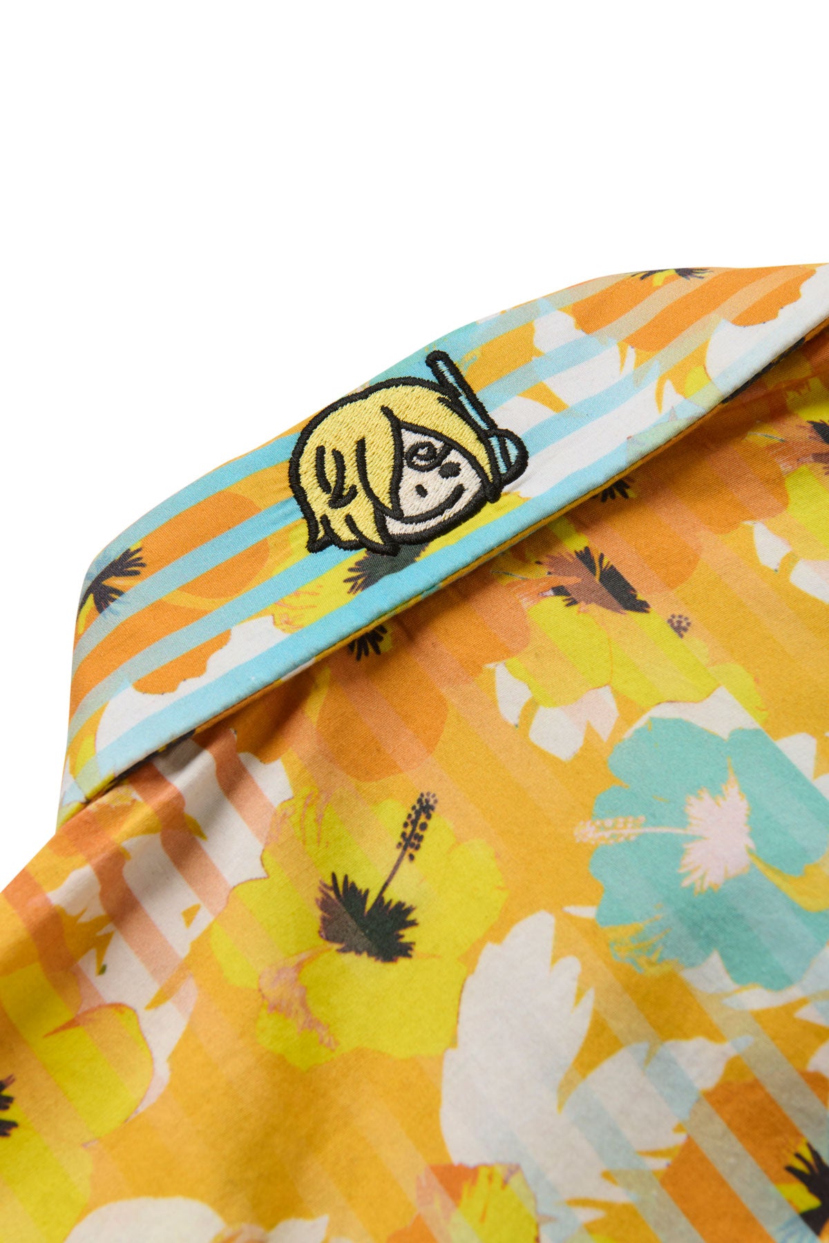 Crafted with 100% cotton, this sublimated flower print oxford short sleeve shirt features a chest tackle twill applique and a Sanji embroidery on the center back collar.