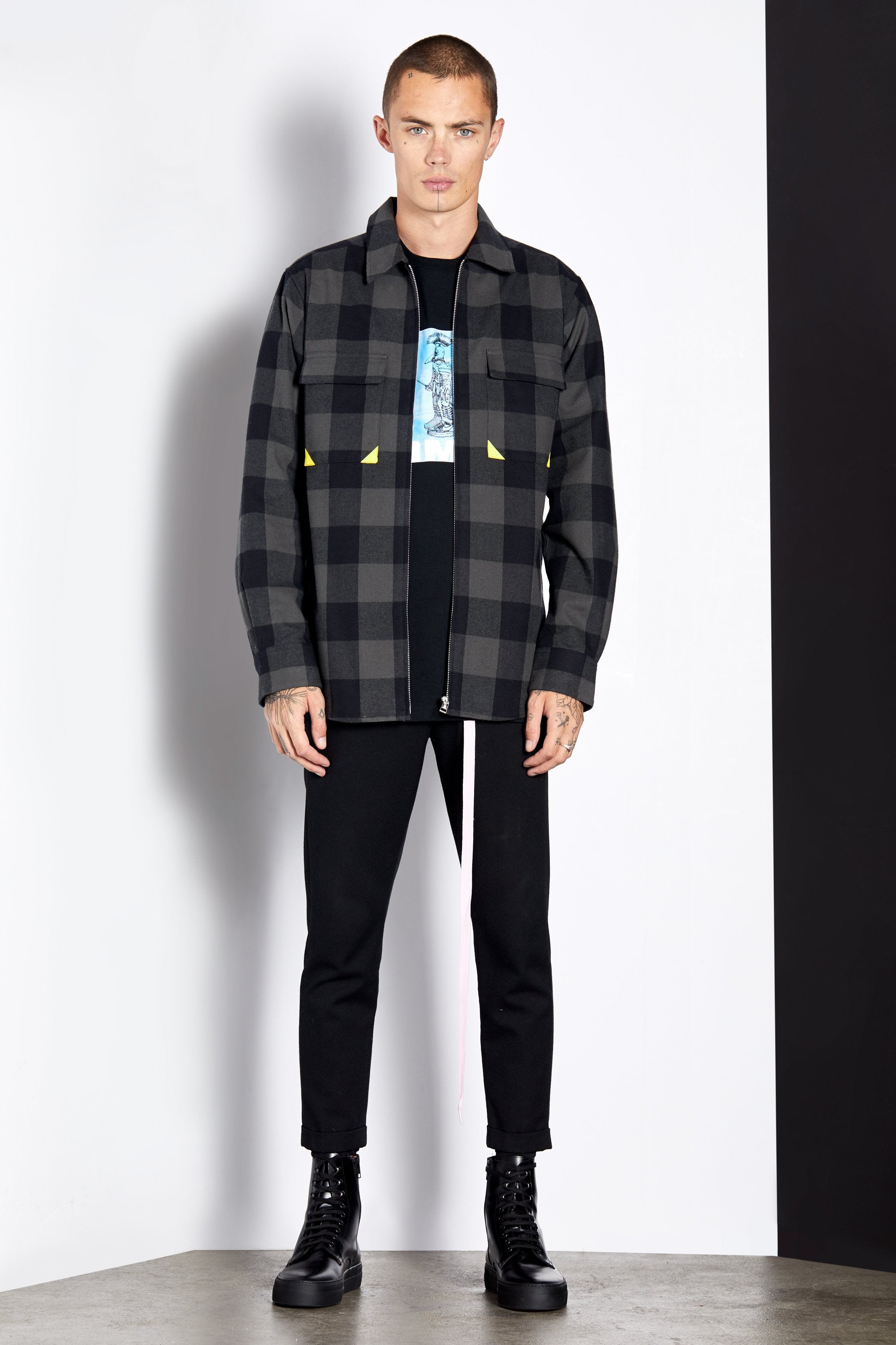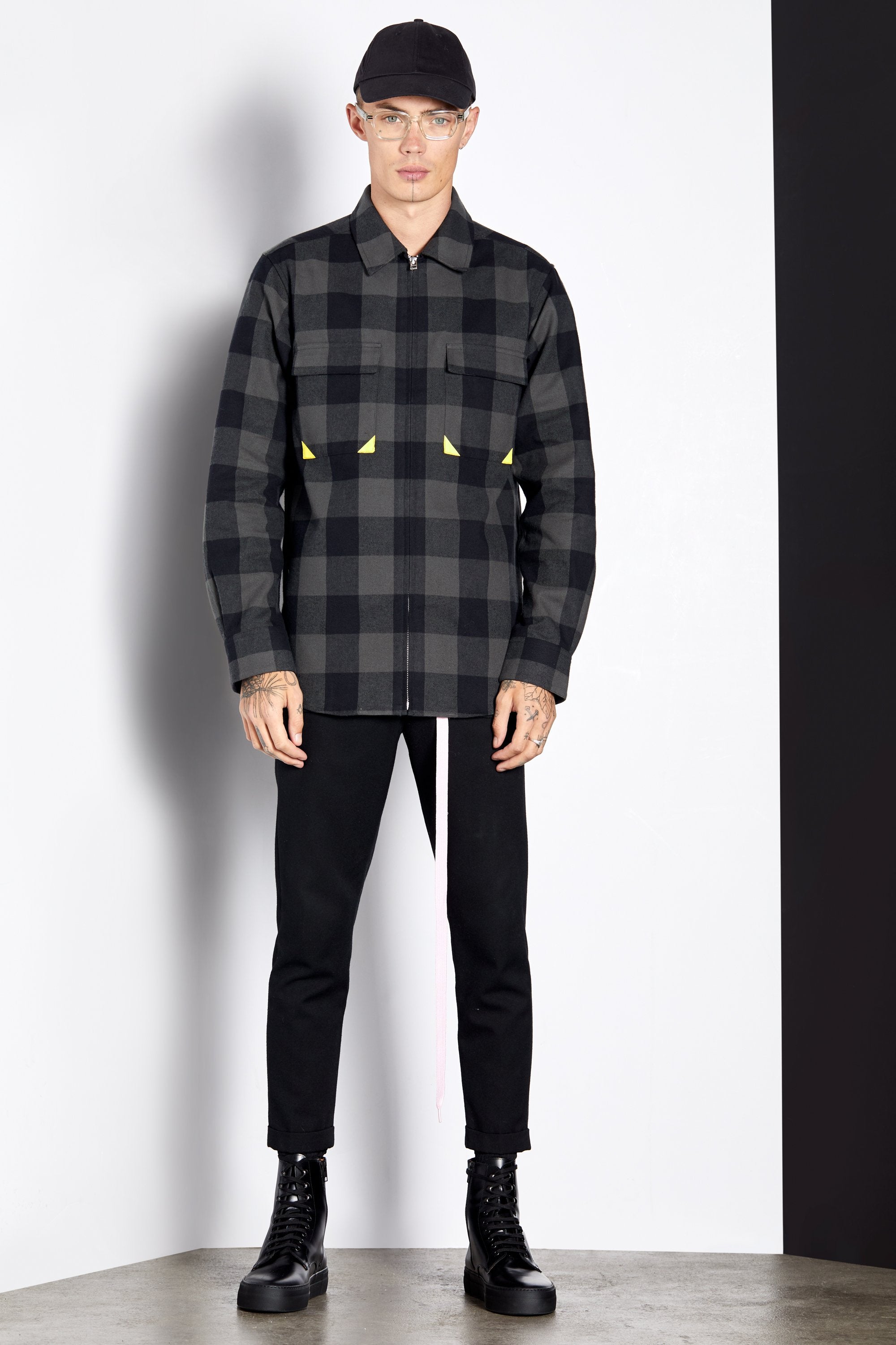 Checkered heavy weight flannel shirt can be worn as a jacket.