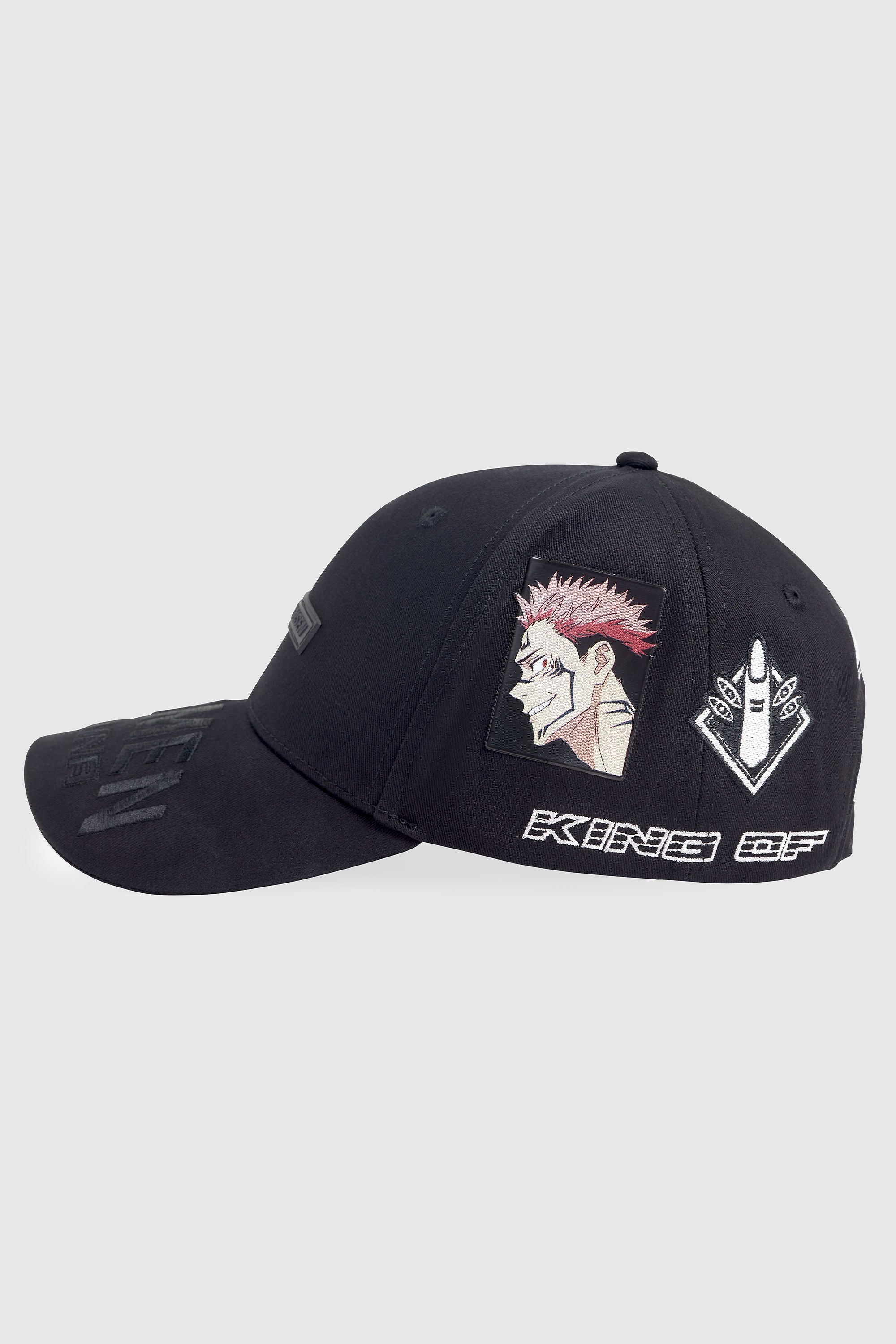 A luxurious baseball cap in heavy cotton canvas featuring printed vinyl patch of the iconic character Ryomen Sukuna.