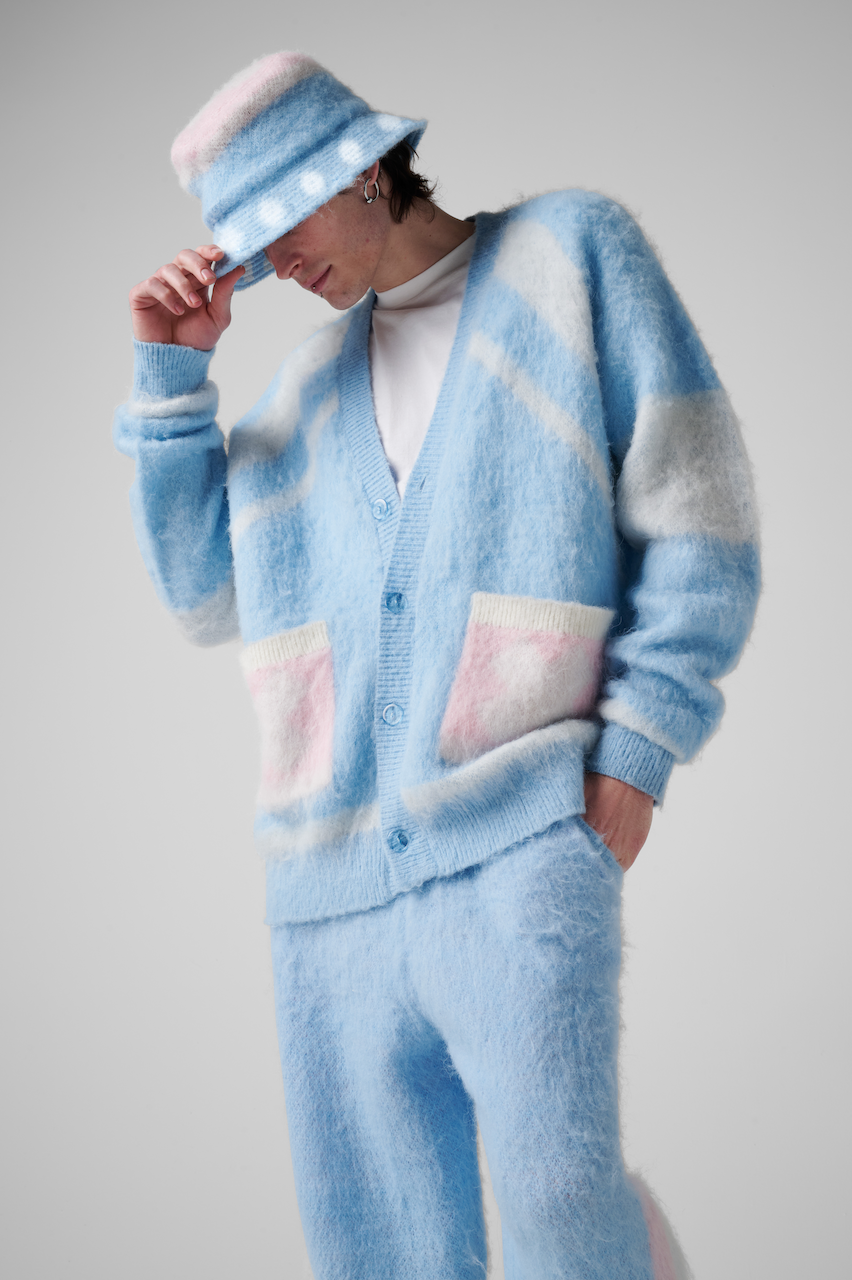 This hat is composed of mohair blend with a 7 gauge knit. It also features Chopper's signature polka dot design on the brim.